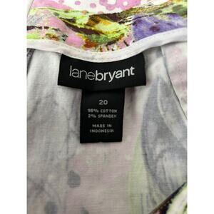 This Lane Bryant skirt features a beautiful floral pattern that is perfect for any occasion, whether it be travel, casual wear, or work attire. The skirt has a convenient zipper closure and is machine washable for easy care. Its colorful design is made with a blend of spandex and cotton material, which gives it a comfortable and flattering fit. The skirt also includes accents like a zipper and is lined for added comfort. Its A-line style and short length make it ideal for summer, fall, and spring seasons, and it has a beachy and flowery theme that is sure to make a statement. This Lane Bryant skirt is a plus-size garment, sized 20, and was manufactured in Indonesia.