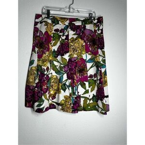 Lane Bryant Skirt Womens Pink Green Floral Side Zip Cotton Blend Sz 14 See Notes