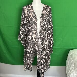 Lane Bryant Sleeve Kimono Tan background with black floral print 2X