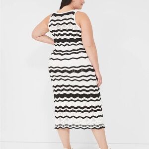 Lane Bryant Sleeveless Chevron Stripe Sweater Dress black white midi size 14/16