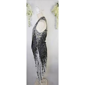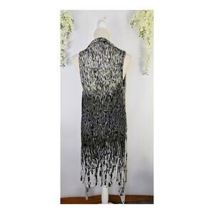 Lane Bryant Sleeveless Open Front Cardigan Vest Abstract Print Drape Hem 14/16