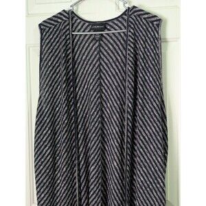 Lane Bryant Sleeveless Open Knit Duster Cardigan Womens 26/28 Navy Gray Stripes