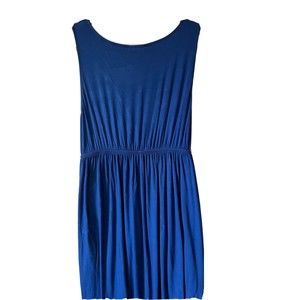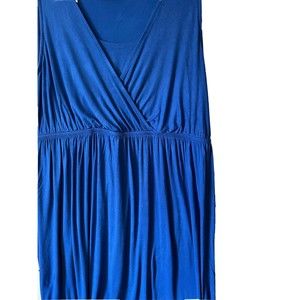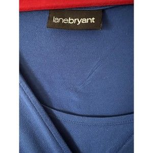 Lane Bryant Sleeveless Blue Shimmer Dress size 14/16. Great Stretch, modest panel with flattering V Neck. Solid Blue Color with Slight Silvery Shimmer to add interest. Dress up with jewelry and wedges, can be worn everywhere! Size and Material Tag Cut Out, please see photo and Check measurements.