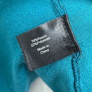 Sleeveless teal Lane Bryant knit tank featuring round neckline and ribbed hem. Constructed of 78% rayon and 22% polyester. Comfortable, lightweight, with a relaxed fit.
