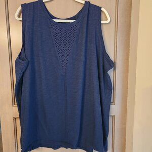 Lane Bryant Sleeveless Tee with Lace Insert Size Women's 26/28 Navy Blue