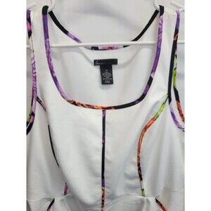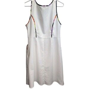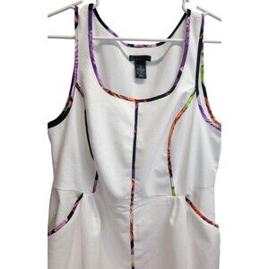 Lane Bryant Sleeveless White Floral Piping Detail Pockets SZ 14. Beautiful condition. Please see photos carefully for details and condition before purchase.