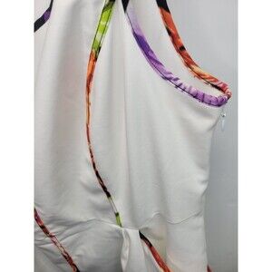 Lane Bryant Sleeveless White Floral Piping Detail Pockets Summer Dress SZ 14