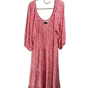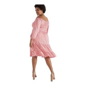 Lane Bryant Smocked Off-Shoulder Ditsy Floral Pink White Dress Size 18/20 NEW