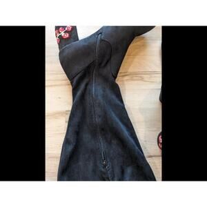Lane Bryant Soft Embroidered Flowers Back Block Heel High Boots Size 10W