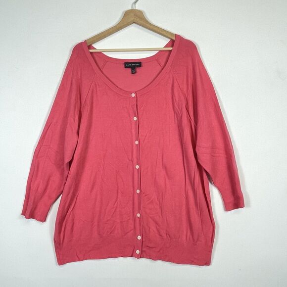 Lane Bryant Pink 3/4 Sleeve Fine Knit Cardigan Sweater. Buttons on the back of the sleeves. Womens 26/28.