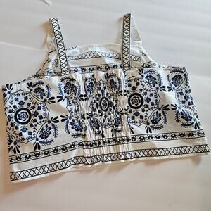 Lane Bryant Square Neck Cropped Top Blouse Floral Plus Size 22/24 Vacation Summer