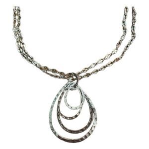 Vintage 90s Lane Bryant Necklace in a Silver Tone Metal. It has a Double Chain with an Adjustable lobster claw closure and a large triple Teardrop Shape Pendent.