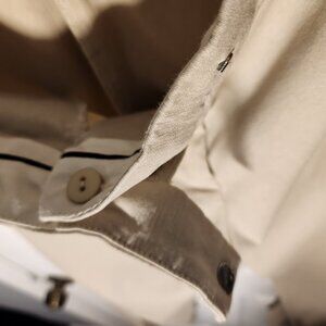 Business casual khaki straight leg, mid-rise pant features a zip closure, with bar & slide