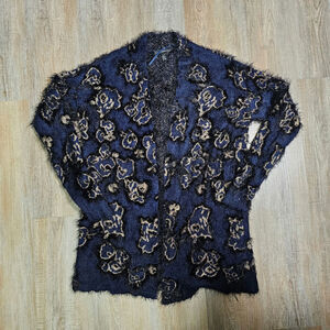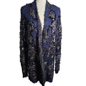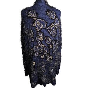 Lane Bryant Stretchy Soft Fuzy Floral Metallic Cardigan Open Front Sweater 14/16