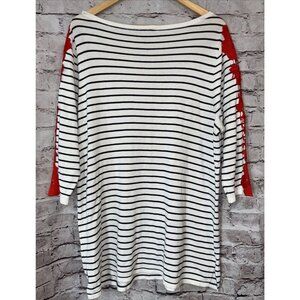 Lane Bryant Stripe 3/4 Sleeve Sweater Tunic Floral Red Lace Sleeve 14/16