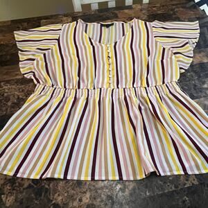 Flowy stripe Lane Bryan Top with decorative buttons to the top. Size 18.