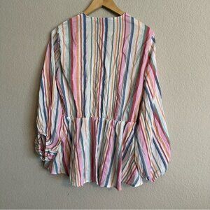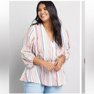Lane Bryant Striped Multicolor Crossover Peplum coquette Babydoll Top Size 14