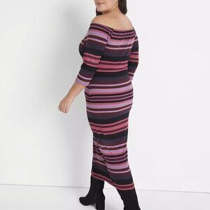 Lane Bryant Striped Pink and Purple Ribbed Knit Midi Dress Size 22/24
