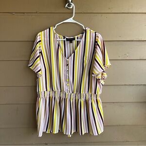 Lane Bryant Striped Short-Sleeve V-Neck Smock Waist Top SZ 16 Retro 70's Summer