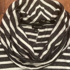 Lane Bryant Striped Sweater Cowl Neck Tunic Womens 14 16 Gray White Soft Comfy