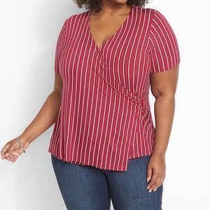 Lane Bryant Striped Wrap Burgundy Top 0164