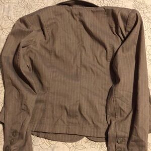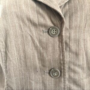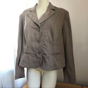 Fall in love with this classic Lane Bryant suit jacket in a gorgeous neutral shade of taupe with creamy white pinstripes.