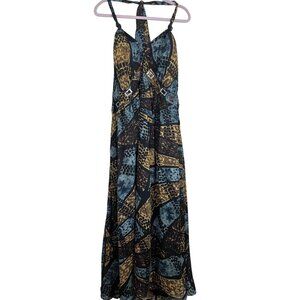 Lane Bryant Sun Dress 28 Brown Halter Maxi Babydoll Y2K Mosaic Patchwork Boho