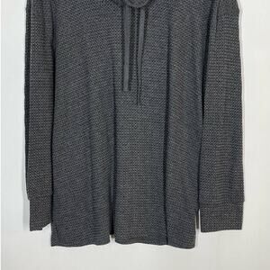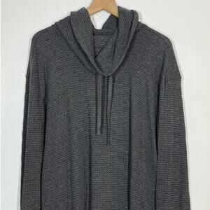 Gray funnel neck sweater by Lane Bryant. Has pretty metallic threads throughout a waffle style knit.