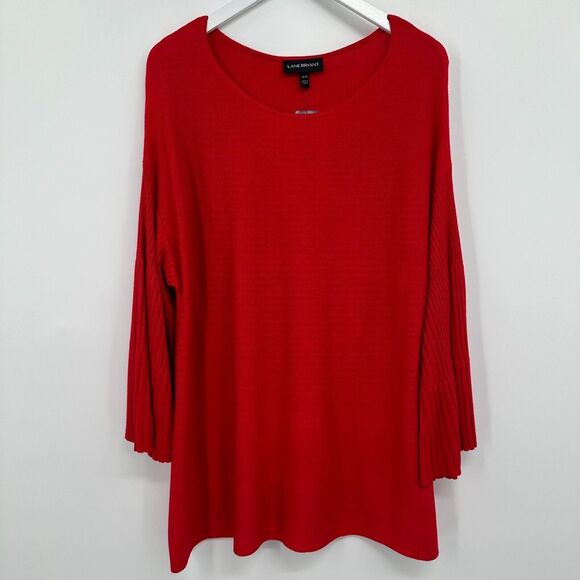 Lane Bryant Sweater Pullover Size 18 20 Stretch Knit Long Bell Sleeves New Red