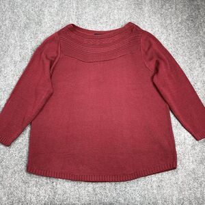 Lane Bryant Sweater Size 22/24 Rumba Red Pointelle Boatneck Acrylic Long Sleeve