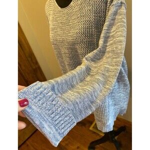 Lane Bryant Sweater Sz 14 / 16 Blue Open Weave Rounded Neck Raglan Sleeve