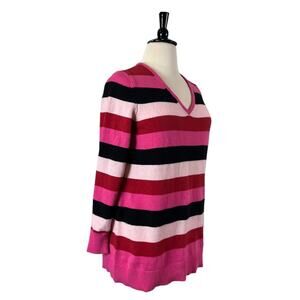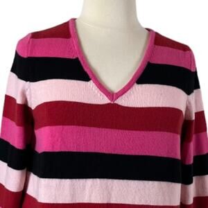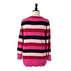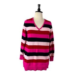 Lane Bryant Sweater V-neck Long Sleeves Pink Red Stripes Women’s Size 14/16