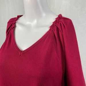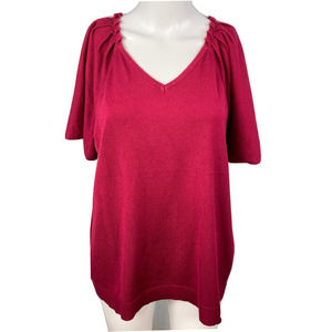Lane Bryant Sweater Womens 14 16 Pink Pleated Shoulder Short Sleeve V Neck Knit
