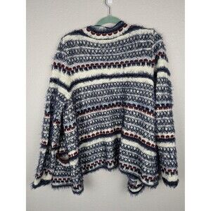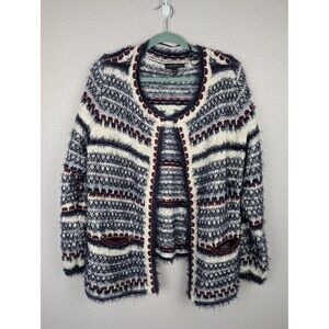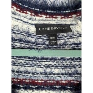 Lane Bryant Sweater Womens 14/16 Navy Cream Striped Open Front Eyelash Cardigan