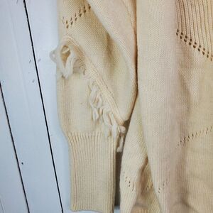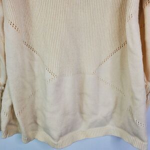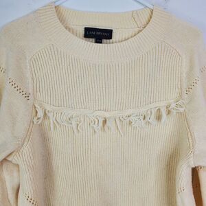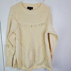 Lane Bryant Sweater Womens 18 20 Fringe Accent Knit Pointelle Cream Neutral