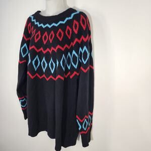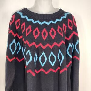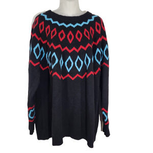 Lane Bryant Sweater Womens 22/24 Black Blue Red Fair Isle Jacquard Knit Crewneck