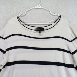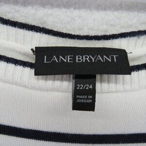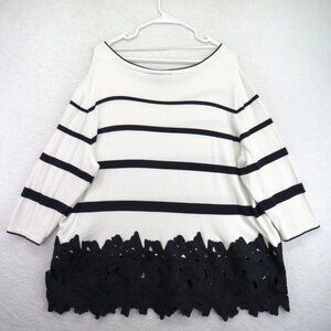 Lane Bryant Sweater Womens 2XL 22/24 White Black Striped Floral Lace Hem Pullover