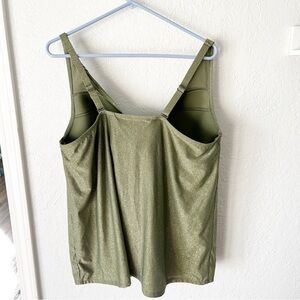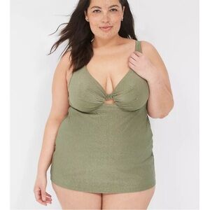 Lane Bryant Swim Top Women's 40DDD Plunge Front Knot Tankini Green Shimmer