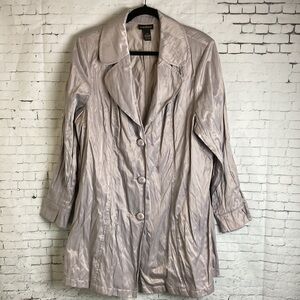 Lane Bryant Swing Jacket Coat Duster Crinkle Blazer Plus SZ 24 Silver Metallic