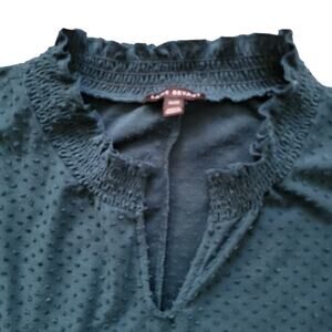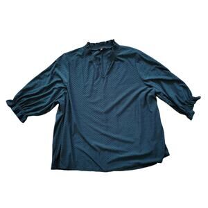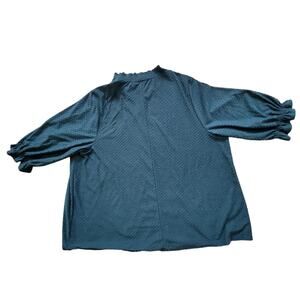 Lane Bryant Swiss Dot Mock V-Neck Bubble Elbow Sleeve Teal Blouse Women Sz 26/28