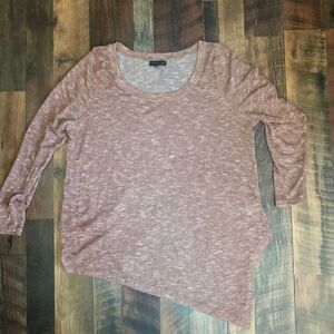 Lane Bryant Sz 14/16 thin Sweater copper metallic thread long sleeve - polyester rayon metallic spandex blend - longer on one side can be tied on longer side