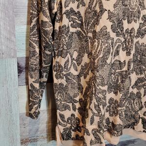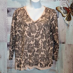 Lane Bryant Sz 18/20 Blush Black Lace Illusion Print VNeck Lightweight Blouse