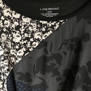 Lane Bryant Sz 22/24 Black Floral Blouse short sleeve - Rayon spandex