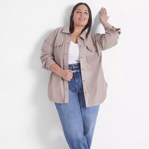 Lane Bryant Tan Faux Leather Collar Long Sleeves Shacket Size 22/24 NWT