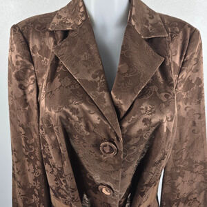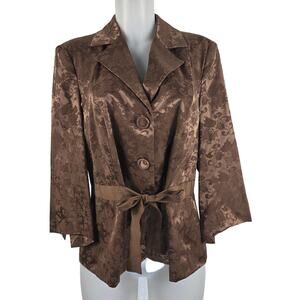 Lane Bryant Tan Filigree Shimmer 3 Button Close Work Belted Blazer 14 NWT