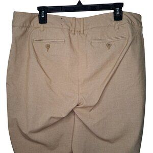 Lightweight office pants from Lane Bryant. Tan/khaki in color. One tiny spot (see last photo), otherwise very good condition. Plus size 18 Tall; measures about 20.5 inches across the waist, 11 inch rise, 31 inch inseam and 10.5 inch leg openings.