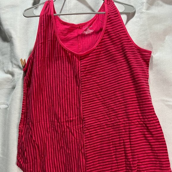 Pink striped athletic tank top. Great for running. Fun pattern that switches in the middle. Slightly worn under the arms, but barely noticeable (see 4th picture). Lane Bryant. Size 18/20.