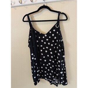 Lane Bryant Tank Top Women 22/24 White Black Polka Dot Knit Polyester Sleeveless