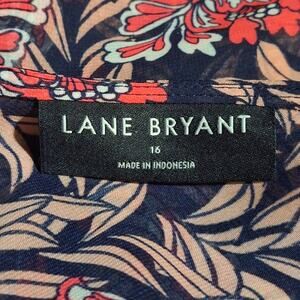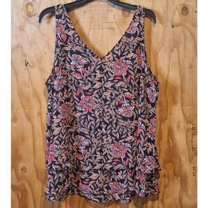 This tank top from Lane Bryant is in excellent preowned condition and has barely been worn.Navy Blue with Pink, White, Peach Floral Pattern. The Tank Top has Two Layers of Lightweight Fabric. V-Neck. 100% Polyester. Size 16.