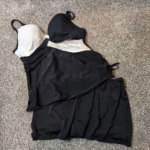 Lane Bryant Tankini Swim Top and Skirt Black White size 40 DD Women's